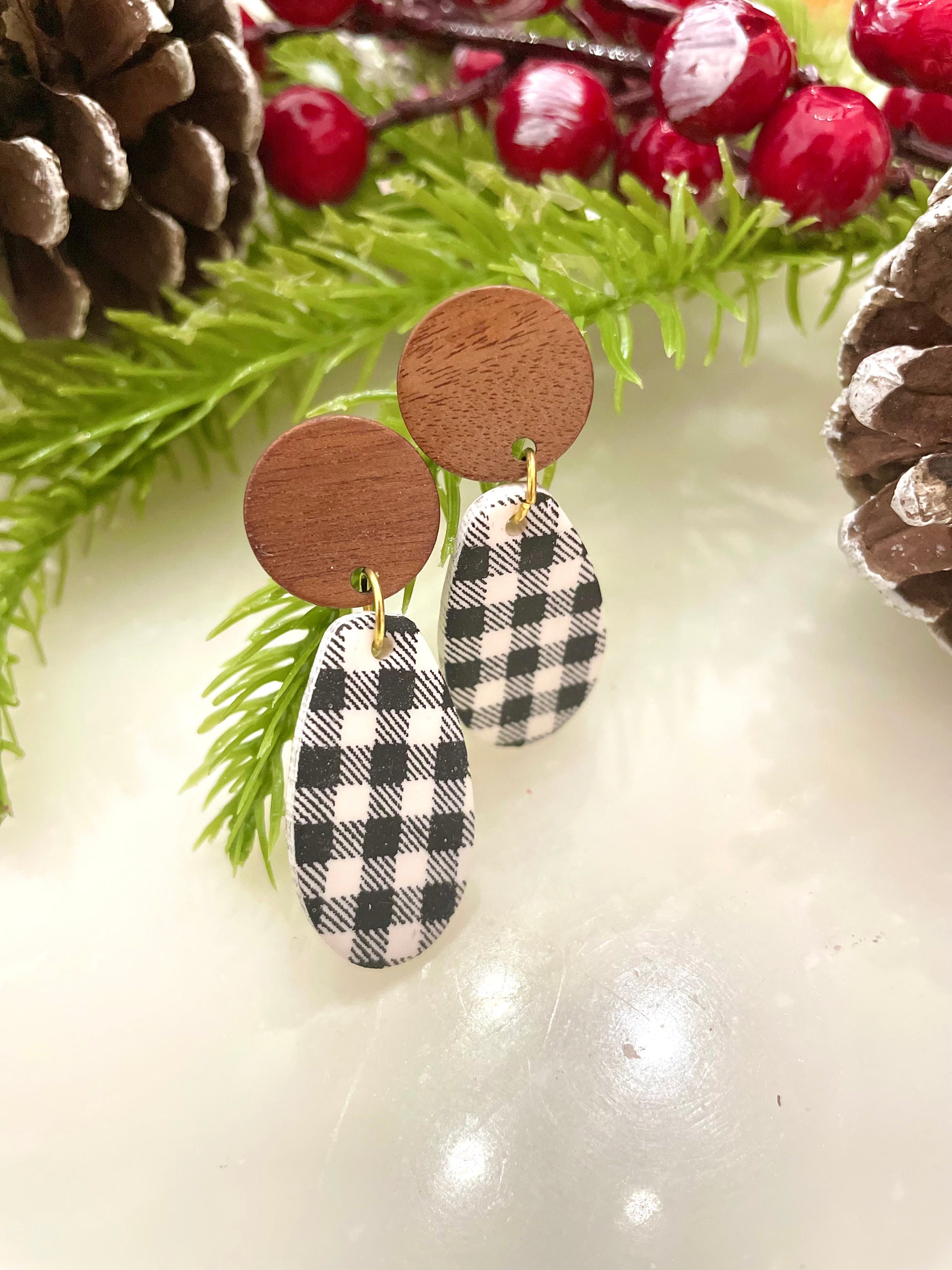Black&White Flannel | Dangle Earrings | Earrings | Polymer Clay Earrings | Christmas