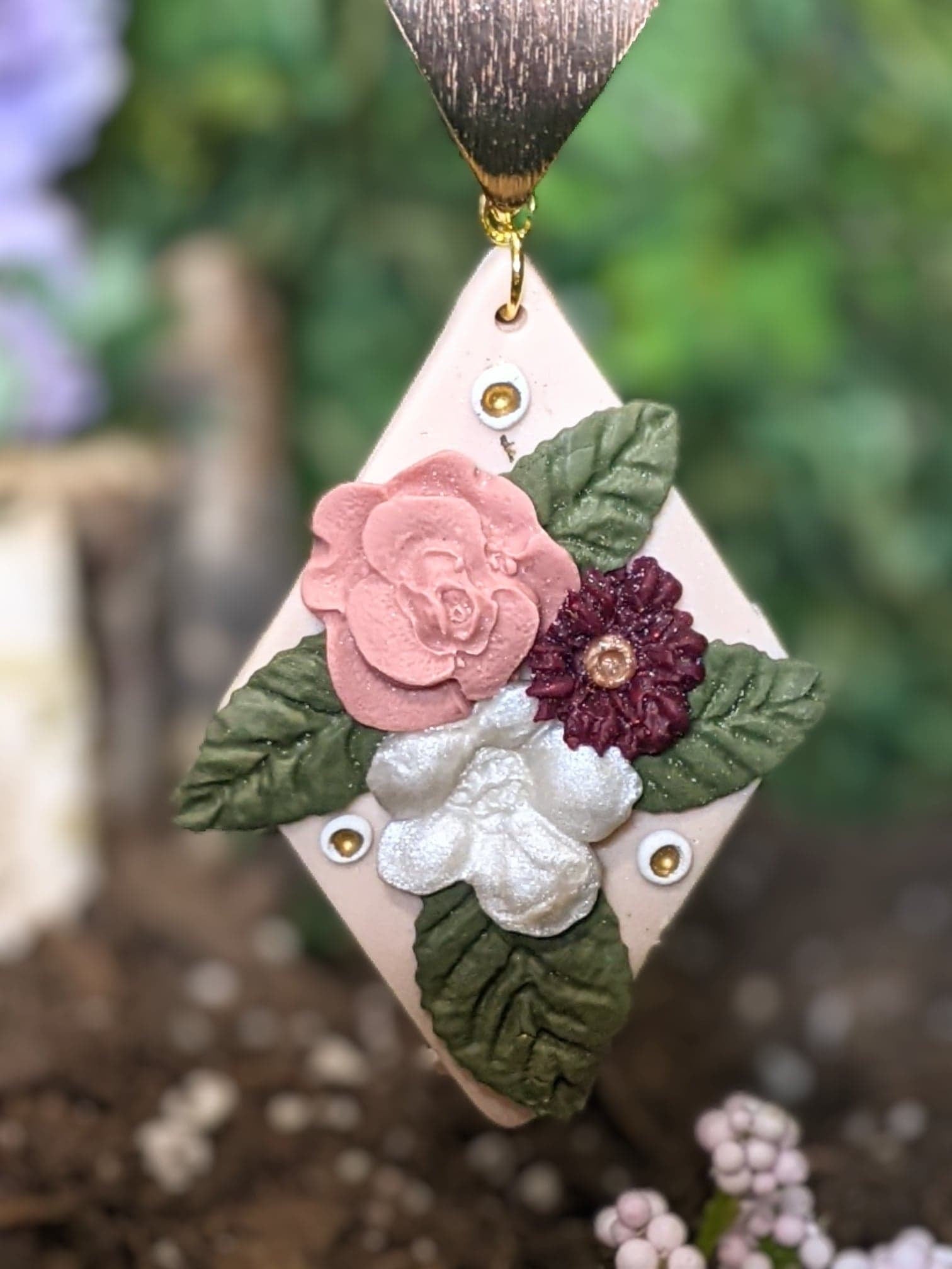 Materials: polymer clay,gold pendant