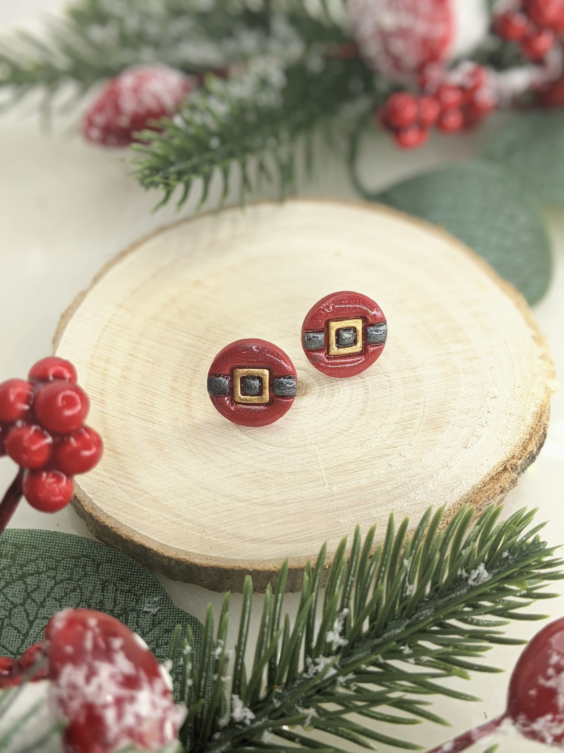 The Santa Claus Belt | Stud Earrings | Earrings | Polymer Clay Earrings | Christmas